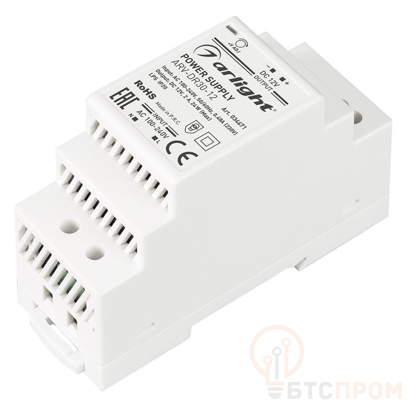 Источник напряжения с гальванической развязкой для светодиодных изделий. Входное напряжение 100-240 VAC. Выходные параметры: 12 В, 2 А, 24 Вт. Негерметичный пластиковый корпус IP 20 для установки на DIN-рейку. Габаритные размеры длина 58 мм, ширина 35 мм, высота 90 мм. Гарантийный срок 3 года. При нагрузке менее 10% после отключения от сети, повторное включение блока питания может быть с задержкой (до 30с)