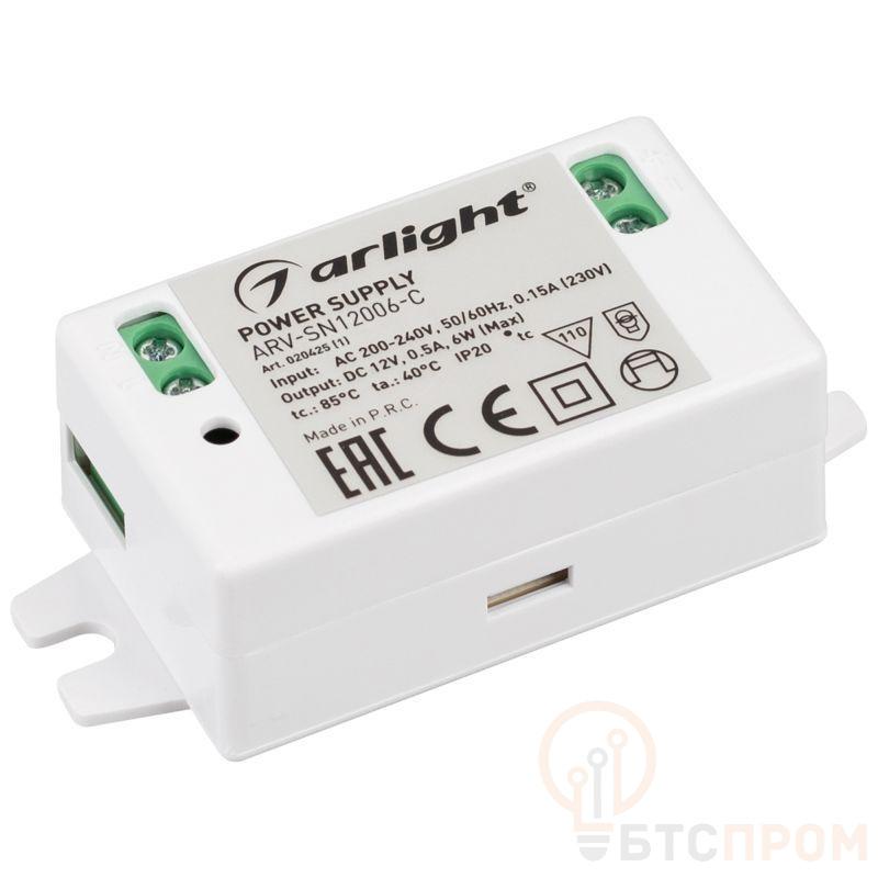 Источник напряжения с гальванической развязкой для светодиодных изделий. Входное напряжение 200-240 VAC. Выходные параметры: 12 В, 0,5 А, 6 Вт. Встроенный PFC >0,5. Негерметичный пластиковый корпус IP 20. Габаритные размеры длина 67 мм, ширина 31 мм, высота 21 мм. Гарантийный срок 3 года.
