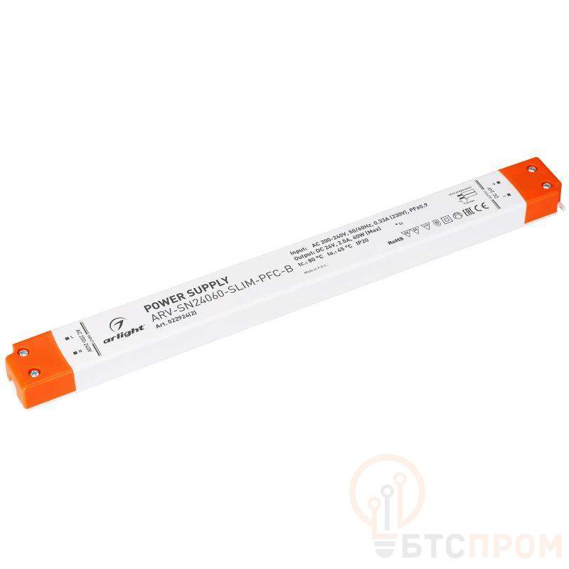 Источник напряжения с гальванической развязкой для светодиодных изделий. Входное напряжение 220-240 VAC. Выходные параметры: 24 В, 2.5 А, 60 Вт. Встроенный PFC >0.9. Негерметичный пластиковый корпус IP 20. Габаритные размеры длина 305 мм, ширина 30 мм, высота 16.7 мм. Гарантийный срок 3 года.