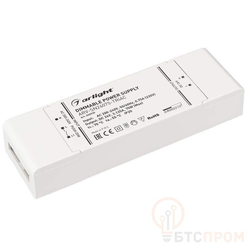 Блок питания 24V с гальванической развязкой, ток 3,125А, 75 Вт, с управлением от симисторного настенного диммера (TRIAC) и/или с помощью функции Push-dim, без корректора мощности, PF>0,5. Рекомендуется для использования с настенными диммерами типа RL (резистивная нагрузка, Leading edge). Пластиковый корпус IP20. Вход: 200-240VAC. Выход: 24VDC 3.125A. Размер 179х56х30 mm. Гарантия 3 года. Не совместим с панелью 038228.