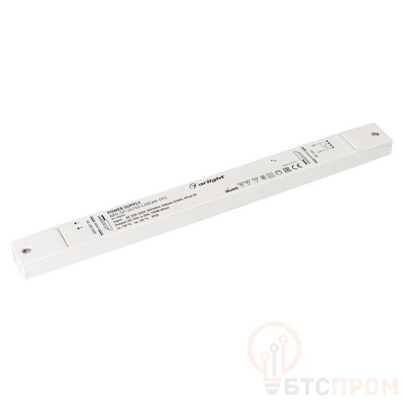 Источник напряжения с гальванической развязкой для светодиодных изделий. Входное напряжение 220-240 VAC. Выходные параметры: 24 В, 6.25 А, 150 Вт. Встроенный PFC >0.95. Тонкий пластиковый корпус IP 20. Габаритные размеры длина 350 мм, ширина 30 мм, высота 18 мм. Гарантийный срок 5 лет.