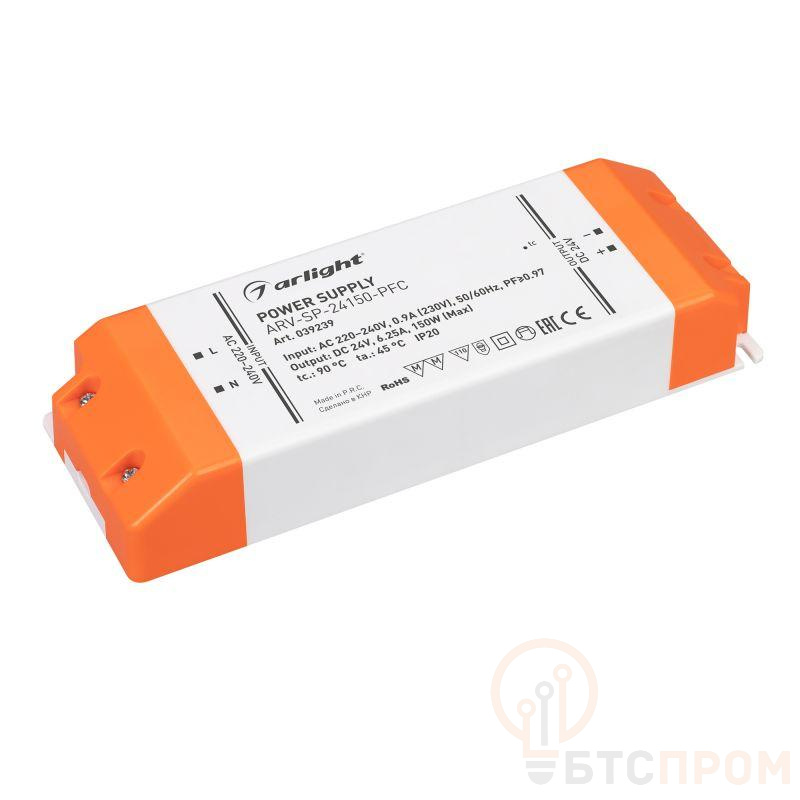 Источник напряжения с гальванической развязкой для светодиодных изделий. Входное напряжение 220-240 VAC. Выходные параметры: 24 В, 6.25 А, 150 Вт. Встроенный PFC >0.97. Негерметичный пластиковый корпус IP 20. Габаритные размеры длина 179,4 мм, ширина 62,5 мм, высота 30,6 мм. Гарантийный срок 5 лет.