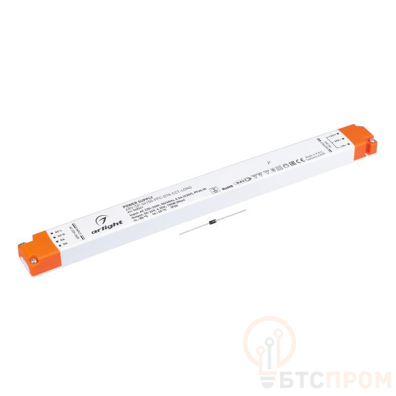 Источник напряжения с возможностью диммирования и регулировки цветовой температуры по протоколу DALI2 DT8 с гальванической развязкой для MIX (CCT) светодиодных лент. Встроены функции PUSH DIM, PUSH CCT. Входное напряжение 220-240 VAC. Выходные параметры: 24 В, 6.25А (максимальный суммарный ток на два канала), 150 Вт. Встроенный PFC >0.95. Негерметичный пластиковый корпус IP 20. Габаритные размеры длина 336.6 мм, ширина 30 мм, высота 18.2 мм. Гарантийный срок 5 года. Диод для регулирования цветовой температуры с помощью PUSH CCT входит в комплект.