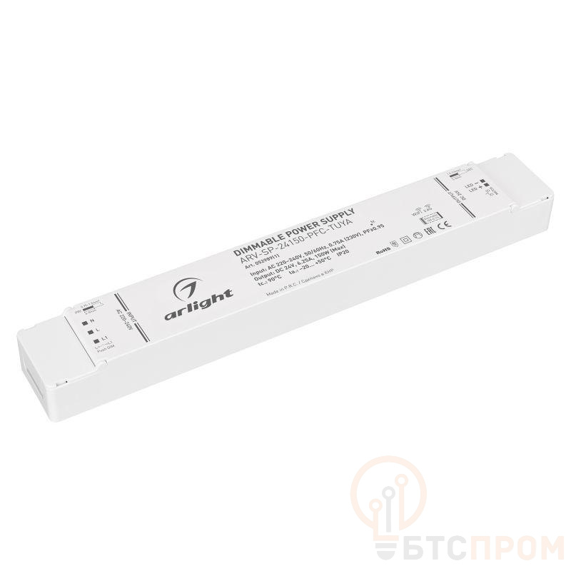 <p>Блок питания ARV-SP-24150-PFC-TUYA — это современный импульсный источник питания, предназначенный для работы со светодиодным оборудованием и другими устройствами, требующими стабильного напряжения 24 В постоянного тока. Модель обладает выходной мощностью 150 Вт и обеспечивает силу тока до 6.25 А, что делает её надежным решением для энергоемких проектов.</p>