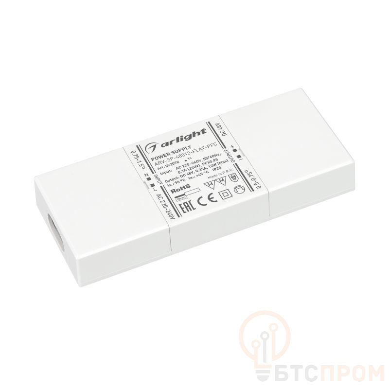 Источник напряжения с гальванической развязкой для светодиодных изделий. Входное напряжение 220-240 VAC. Выходные параметры: 48 В, 0.25 А, 12 Вт. Встроенный PFC >0.95. Сверхтонкий пластиковый корпус IP20. Габаритные размеры длина 112 мм, ширина 46 мм, высота 15.5 мм. Гарантийный срок 5 лет.