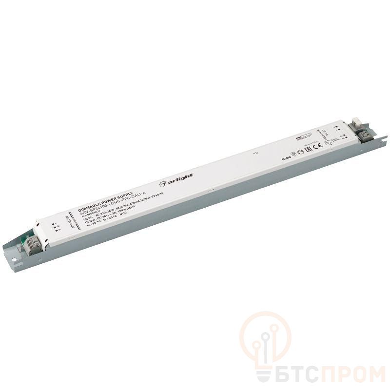 Блок питания 24V, ток 4,2А, 100Вт, с управлением 1-10V, с корректором мощности, PF>0,95. Тонкий металлический корпус IP20. Вход: 220-240VAC. Выход: 24VDC 4.2A. Размер 360х30х21 mm. Совместимость со стандартом EMC. Гарантия 5 лет.