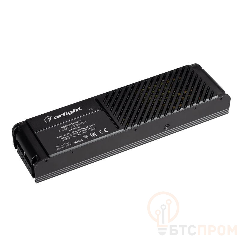 Источник напряжения с гальванической развязкой для светодиодных изделий. Входное напряжение 100-240 VAC. Выходные параметры: 24 В, 8.3 А, 200 Вт. Встроенный PFC >0,95. Негерметичный алюминиевый сетчатый корпус IP 20. Возможность регулировки яркости с помощью DIP-переключателей. Функция плавного пуска. Габаритные размеры длина 207 мм, ширина 56 мм, высота 31 мм. Гарантийный срок 5 лет.