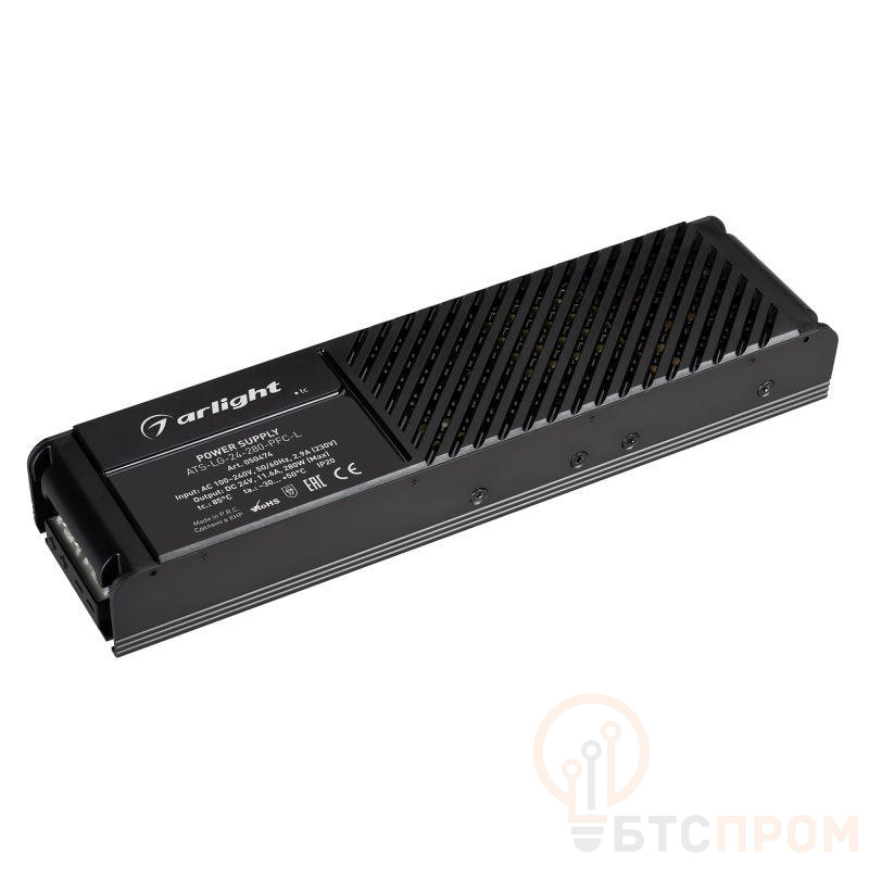 Источник напряжения с гальванической развязкой для светодиодных изделий. Входное напряжение 100-240 VAC. Выходные параметры: 24 В, 11.6 А, 280 Вт. Встроенный PFC >0,95. Негерметичный алюминиевый сетчатый корпус IP 20. Возможность регулировки яркости с помощью DIP-переключателей. Функция плавного пуска. Габаритные размеры длина 237 мм, ширина 62 мм, высота 34 мм. Гарантийный срок 5 лет.