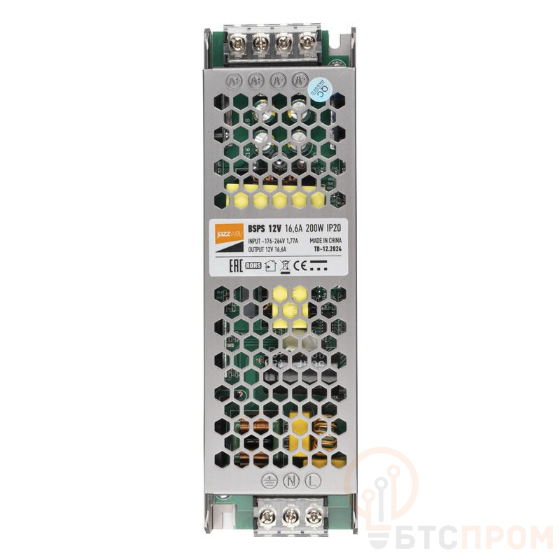 Блок питания для светодиодной ленты 200Вт 16.5А 12В IP20 BSPS метал. JazzWay 2859433A фото в каталоге от BTSprom.by