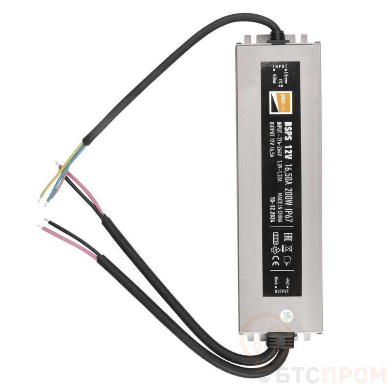 Блок питания для светодиодной ленты 200Вт 16.5А 12В IP67 BSPS влагозащ. метал. JazzWay 1016348A фото в каталоге от BTSprom.by