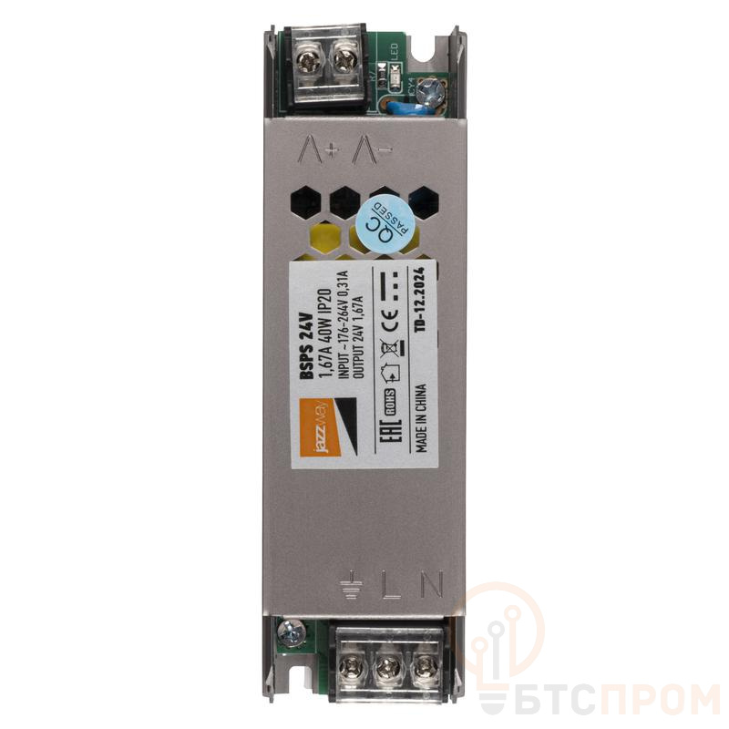 –Блок питания для светодиодной ленты 40Вт 1.67А 24В IP20 BSPS метал. Pro JazzWay 5018471