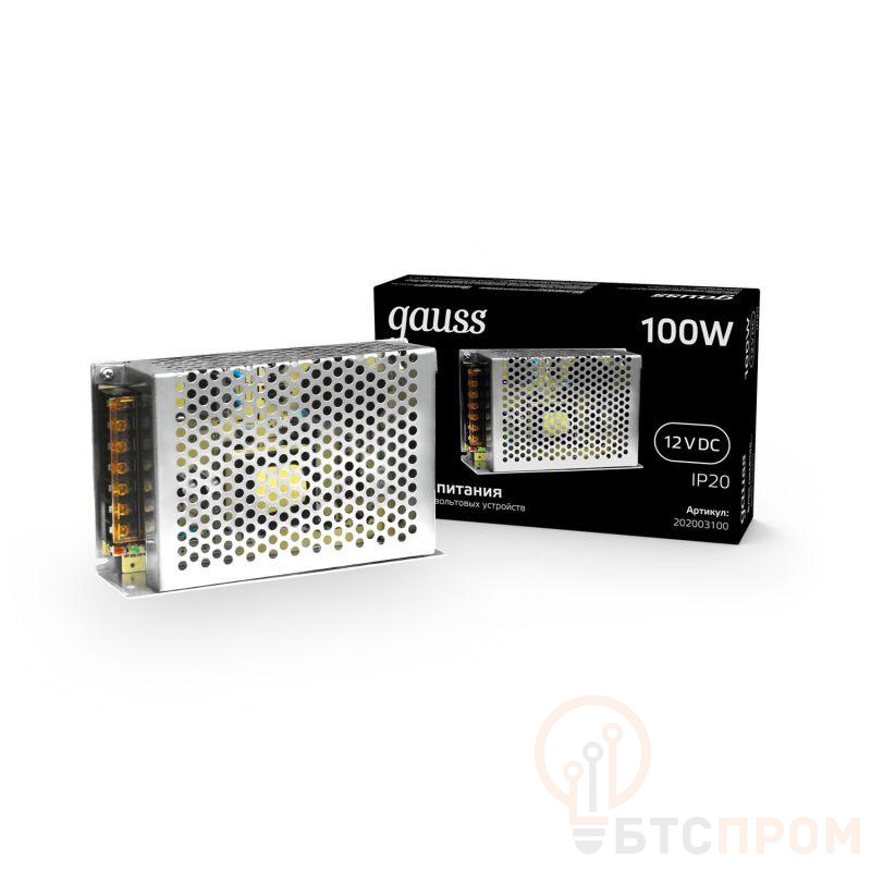 –Блок питания для светодиодной ленты Black 100Вт 12В IP20 (драйвер) GAUSS 202003100