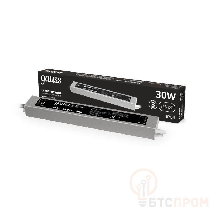 Блок питания для светодиодной ленты Black 30Вт 24В IP66 герметичный (драйвер) GAUSS 202022030 фото в каталоге от BTSprom.by