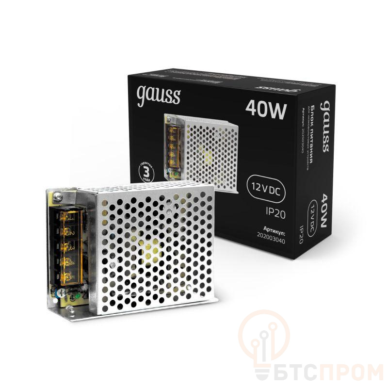 –Блок питания для светодиодной ленты Black 40Вт 12В IP20 (драйвер) GAUSS 202003040