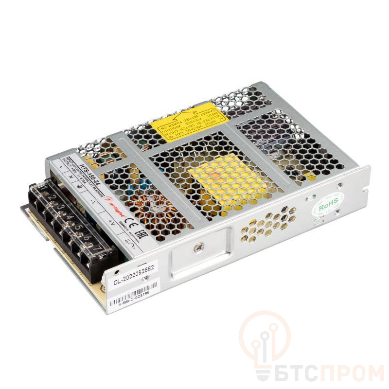 Источник напряжения с гальванической развязкой для светодиодных изделий. Входное напряжение 176-264 VAC. Выходные параметры: 24 В, 6.2 А, 150 Вт. Встроенный PFC >0.5. Негерметичный алюминиевый сетчатый корпус IP 20. Габаритные размеры длина 159 мм, ширина 97 мм, высота 30 мм. Гарантийный срок 3 года.