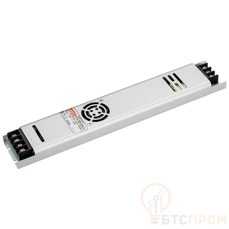 Источник напряжения с гальванической развязкой для светодиодных изделий. Входное напряжение 180-264 VAC. Выходные параметры: 24 В, 12.5 А, 300 Вт. Встроенный PFC >0.5. Негерметичный алюминиевый сетчатый корпус IP 20. Габаритные размеры длина 308 мм, ширина 53 мм, высота 21 мм. Встроенный Вентилятор (без автоконтроля температуры). Гарантийный срок 3 года.