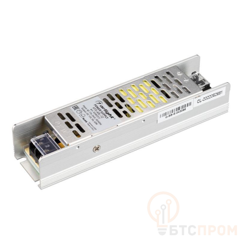 Источник напряжения с гальванической развязкой для светодиодных изделий. Входное напряжение 176-264 VAC. Выходные параметры: 12 В, 5 А, 60 Вт. Встроенный PFC >0,5. Негерметичный алюминиевый сетчатый корпус IP 20. Габаритные размеры длина 156 мм, ширина 40 мм, высота 29 мм. Гарантийный срок 3 года.