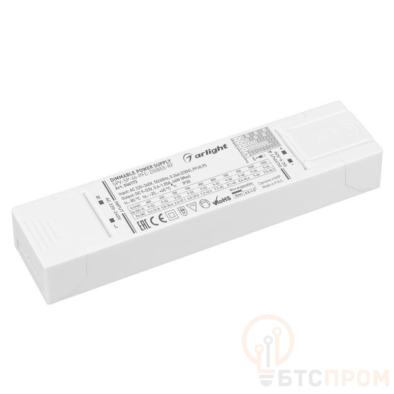 Диммируемый мультитоковый блок питания с управлением Zigbee 3.0, с гальванической развязкой. Входное напряжение 220-240 VAC. Выходные параметры: 9-53В (600мА), 9-53В (650мА), 9-53В (700мА), 9-53В (750мА), 9-53В (800мА), 9-53В (850мА), 9-50В (900мА), 9-48В (950мА), 9-46В (1000мА), 9-44В (1050мА), максимальная мощность 46 Вт. Встроенный PFC, PF >0.95. Габаритные размеры длина 180 мм, ширина 42 мм, высота 24 мм. Гарантийный срок 5 лет.