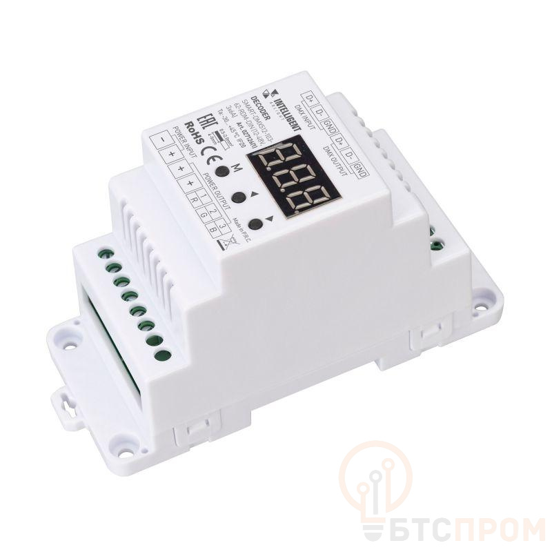 Декодер SMART-DMX512-103-62-RDM-DIN — это компактное и мощное устройство для управления сложными световыми системами по протоколу DMX512. Аппарат поддерживает функцию RDM, что позволяет дистанционно управлять и мониторить параметры подключенных светильников, значительно упрощая их настройку и обслуживание.