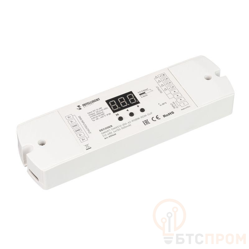 Декодер SMART-DMX512-204-62-RGBW-RDM-SUF (12-48В 4х150-500мА) IP20 пластик INTELLIGENT ARLIGHT 037440