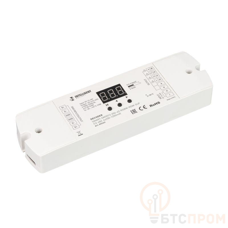 Декодер SMART-DMX512-204-62-RGBW-RDM-SUF (12-48В 4х350-1200мА) IP20 пластик INTELLIGENT ARLIGHT 037441