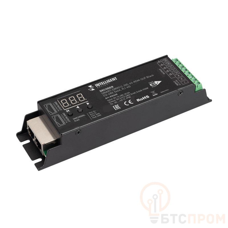 Декодер SMART-DMX512-305-63-RDM-SUF Black (12-48В 5х4А RJ-45) IP20 металл INTELLIGENT ARLIGHT 036245