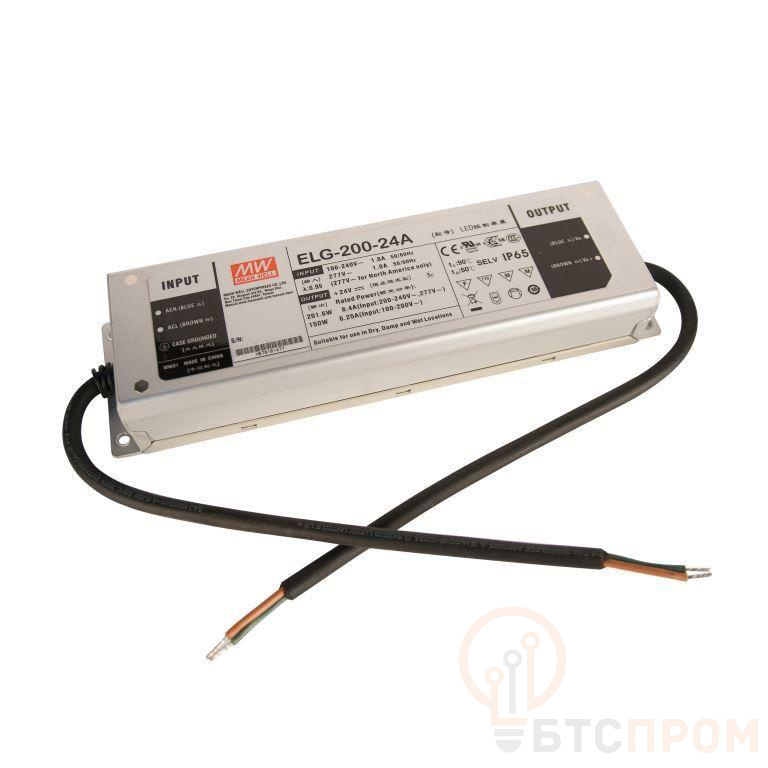 Драйвер 96Вт 24В для светодиодной ленты Meanwell ELG-100-24A IP65 199х63х35.5мм VARTON ELG-100-24A фото в каталоге от BTSprom.by