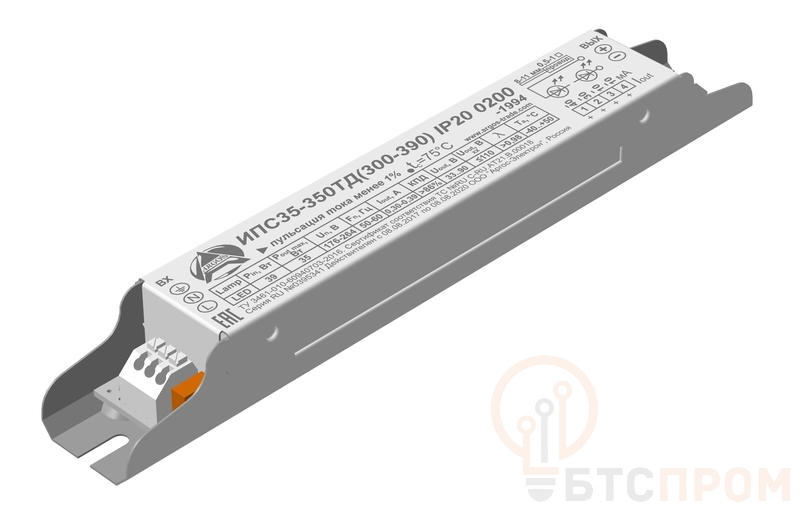 Драйвер ИПС 35-350ТД(300-390) 0200 от бренда Argos — это надежный источник постоянного тока, предназначенный для стабильного питания светодиодного оборудования. Устройство обеспечивает выходной ток 350 мА с регулируемым напряжением в диапазоне от 300 до 390 В, что позволяет гибко настраивать его под конкретные задачи.