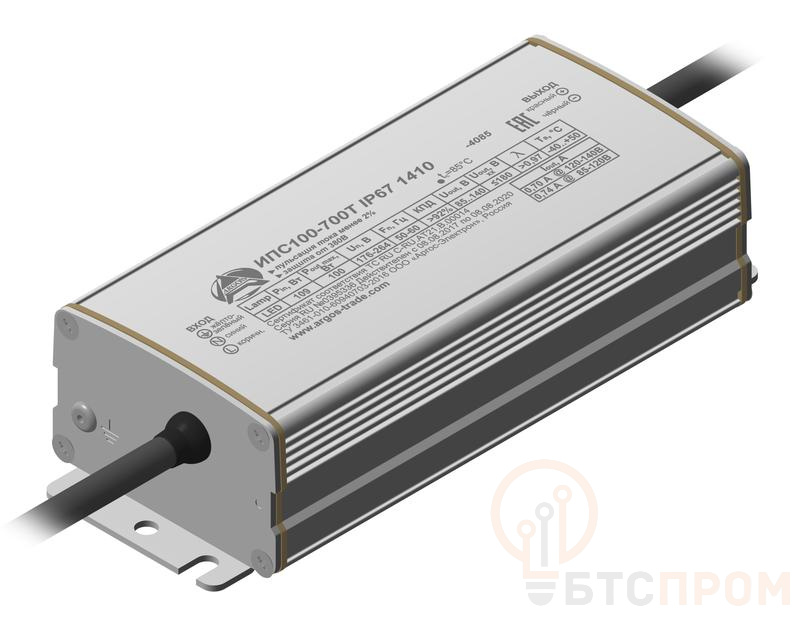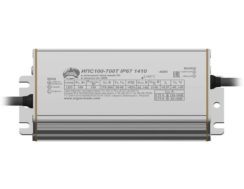 Источник питания светодиодов (ИПС) применяется для питания светодиодных линеек, рассчитанных на работу в режиме постоянного тока. Защита от КЗ и ХХ, PF 0,95 , КПД, %, не менее 92.0, соответствие ЭМС в диапазоне от 9 кГц до 30МГц, стойкость к микросекундным импульсам большой энергии 4 кВ (L-N), 6 кВ (L-PE, N-PE), гальваническая изоляция, пульсации <1%. При подаче на вход драйвера напряжения более 300 В AC драйвер переходит в прерывистый режим работы с последующим отключением. Нормальный режим работы восстанавливается автоматически при уменьшении напряжения питания. Предельное значение входного напряжения составляет 420 В АС. Светодиоды при срабатывании такой защиты кратковременно погасают, мигая с частотой 100 Гц. При нормализации напряжения светодиоды автоматически переходят в режим стабильной работы. Наличие грозозащиты