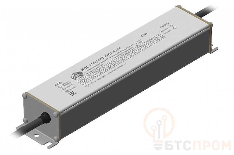 Источник питания ИПС120-700Т IP67 от бренда «Аргос» — это надежный и компактный блок питания, предназначенный для эксплуатации в сложных условиях. Модель обеспечивает стабилизированное выходное напряжение 12 В при токе до 700 мА (мощность 8.4 Вт). Его ключевой особенностью является высокая степень защиты корпуса IP67, что гарантирует полную защиту от пыли и кратковременного погружения в воду.