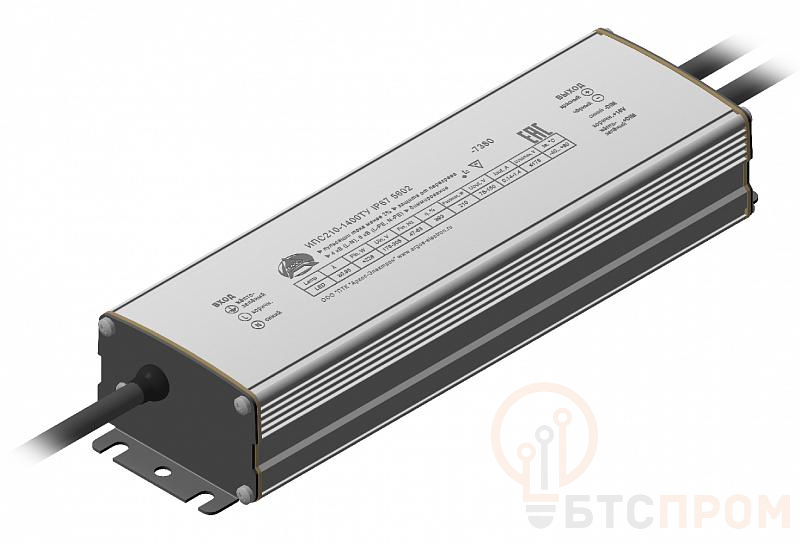 Источник питания ИПС210-1400ТУ 5602 от бренда «Аргос» — это надежный и компактный блок питания, предназначенный для эксплуатации в сложных условиях. Модель обладает высокой степенью защиты IP67, что обеспечивает полную защиту от пыли и временного погружения в воду. Устройство преобразует переменное напряжение 220 В в стабилизированное постоянное напряжение 24 В с мощностью до 35 Вт.
