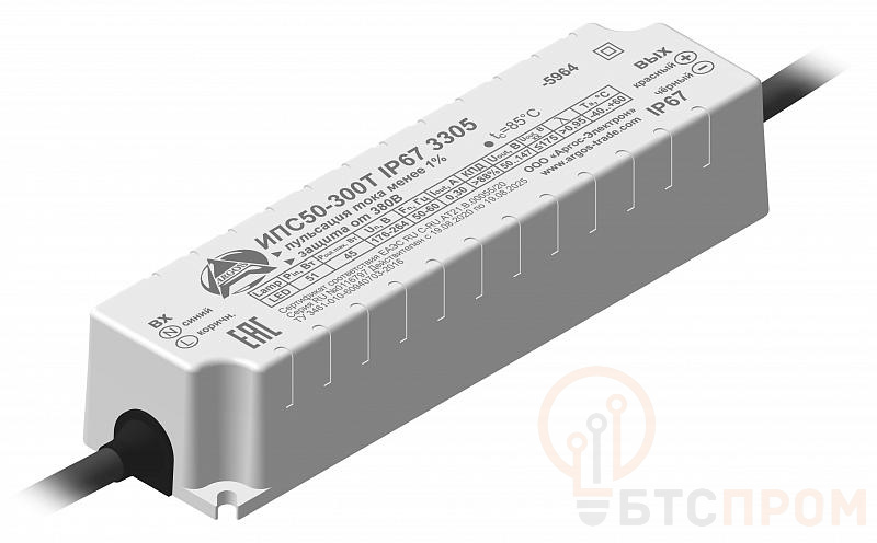 Источник питания ИПС50-300Т IP67 3305 от бренда Argos — это надежный и компактный блок питания, предназначенный для работы в сложных условиях. Модель обладает высокой степенью защиты IP67, что гарантирует полную защиту от пыли и возможность кратковременного погружения в воду, обеспечивая бесперебойную работу.