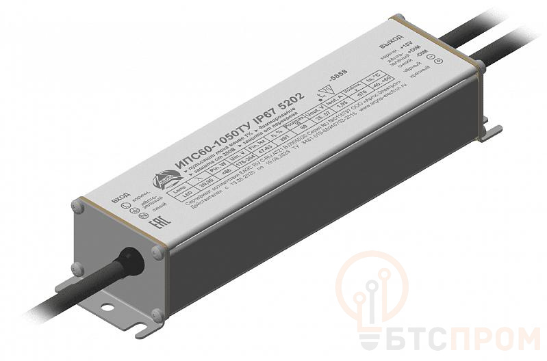 Источник питания ИПС60-1050ТУ 5202 от компании «Аргос» — это надежный импульсный блок питания в защищенном корпусе с классом пылевлагозащиты IP67. Устройство обеспечивает стабильное выходное напряжение 60 В при силе тока до 1050 мА и мощности 63 Вт.