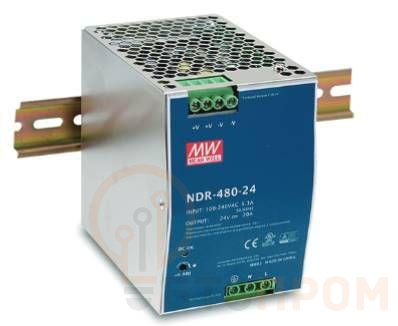 Источник питания на DIN-рейку 24В 20А 480Вт MEANWELL I класс защиты 85.5х125.2х128.5мм VARTON NDR-480-24