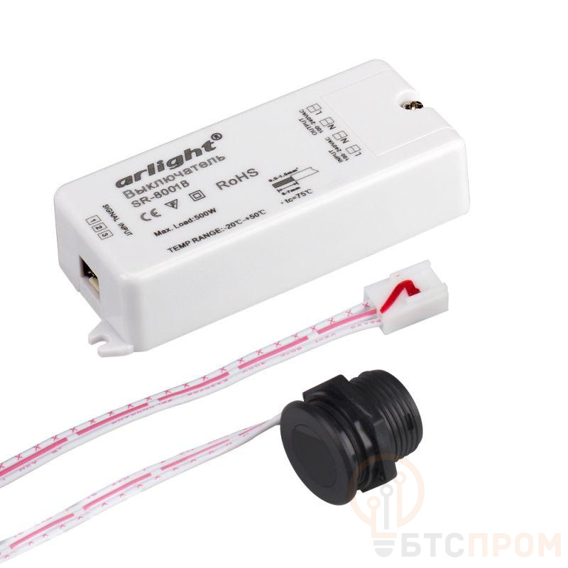 Бесконтактный ИК-выключатель ламп и освещения 220 В (черный сенсор в комплекте). Для дверей, расстояние от 1 до 6 см, датчик открыт — «вкл», закрыт — «выкл». Макс. мощность 500 Вт, AC 100-240 В. Габаритные размеры: блок 82?33?20 мм, датчик 20?20 мм, посадочное отверстие 18 мм, кабель 1.5 м.