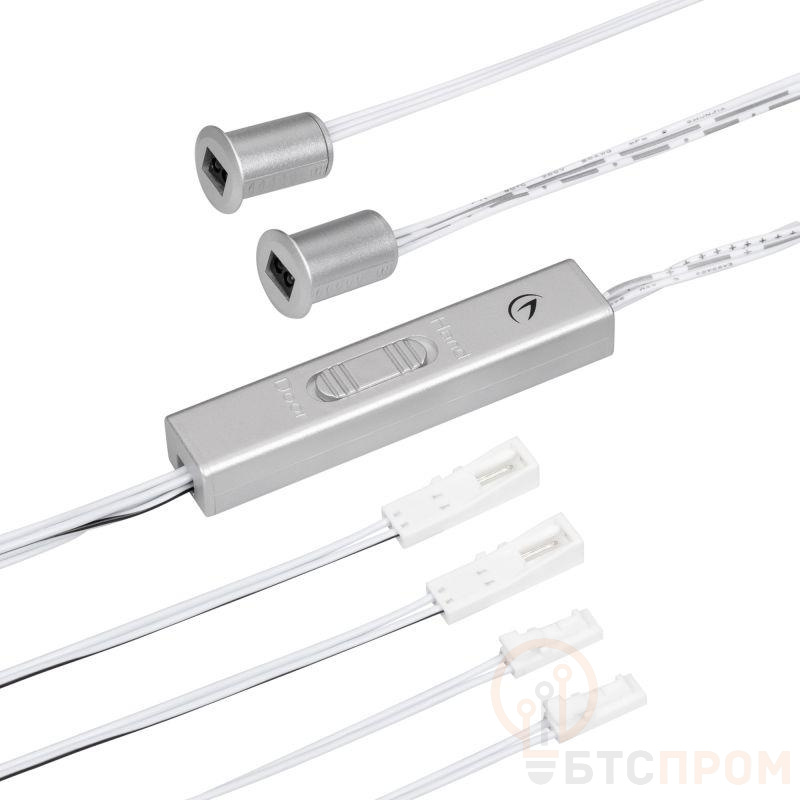 Выключатель для светодиодной ленты 12-24 В. В комплекте 2 датчика. Питание/рабочее напряжение DC 12-24 В, максимальный ток 4 A на канал, 1 канал, максимальная мощность 48-96 Вт. Реагирует на открывание дверей или движение рукой, переключатель между режимами «hand» - «door» расположен на корпусе блока управления. Расстояние срабатывания до 10 см, датчик открыт — «вкл», закрыт — «выкл». Габаритные размеры блока управления: 75 х 15 х 11 мм, кабель 1 м (у датчика), кабель 25 см (питание). Габаритные размеры датчика: 11 х 18 мм, врезное отверстие O 11 мм.