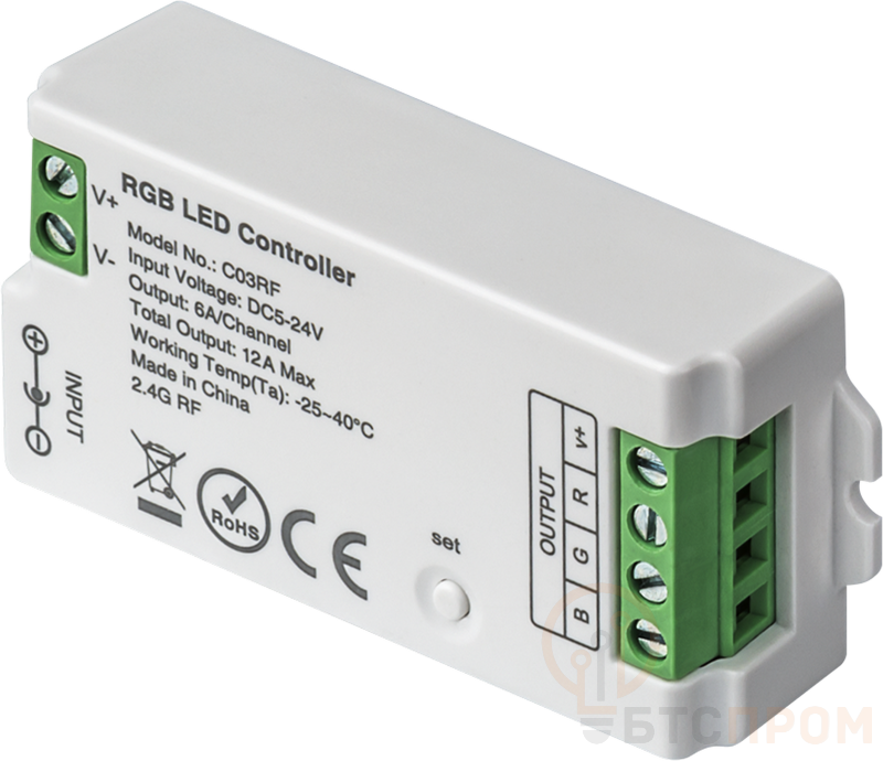 Конструкция. С помощью контроллера возможно изменять яркость и цвет свечения светодиодной RGB-ленты, а также задавать определенные световые сцены. Для управления необходим пульт ДУ (модели ИПДУ-01, ИПДУ-02). К одному контроллеру может быть привязано до 5 пультов. Способ подключения. Клеммная винтовая колодка для подключения питающей сети и нагрузки. Дополнительный разъем jack 5.5 мм для подключения питающей сети.
