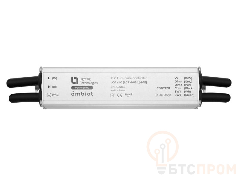 Контроллер предназначен для управления светильниками по питающе электрической сети. Контроллер получает и обрабатывает команды от верхних уровней системы Ambiot. Команды могут быть как индивидуальными, так и групповыми. Обработка контроллером групповых команд управления, позволяет системе реализовывать групповое диммирование и другие групповые алгоритмы управления сетью исполнительных устройств. Функция позволяет увеличить оперативность функционирования сети устройств и снизить нагрузку на коммуникационную сеть. Пластиковый корпус.