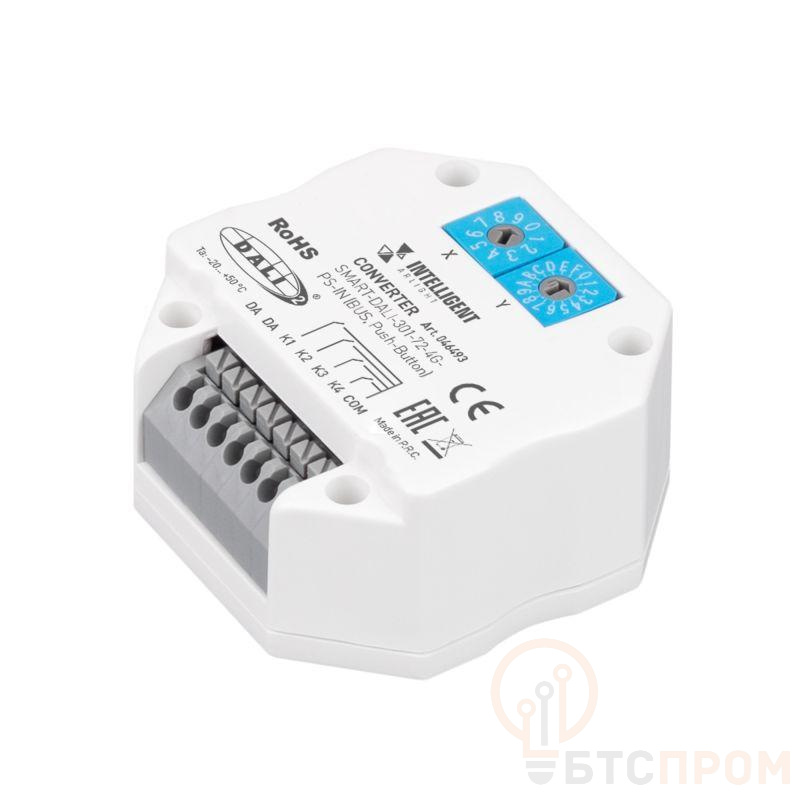 Конвертер SMART-DALI-301-72-4G-PS-IN BUS от ARLIGHT — это интеллектуальное устройство для управления освещением по протоколу DALI. Модель предназначена для преобразования сигналов и организации плавного включения/выключения, регулировки яркости 4-х независимых групп светильников с возможностью запоминания сцен освещения.
