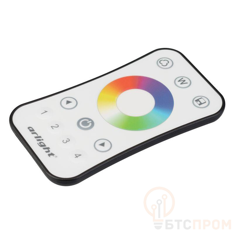 Кнопочный радиопульт с сенсорным кольцом 2.4 ГГц белого цвета для управления RGBW источниками света. 4 зоны управления, 4 слота памяти пользовательских настроек, управление цветом с помощью сенсорного кольца. Питание 3VDC (CR2032). Габариты 107x58.5x9 мм. Управляет контроллерами и панелями серии SMART (поставляются отдельно). Настенные держатели приобретаются отдельно (см. аксессуары).