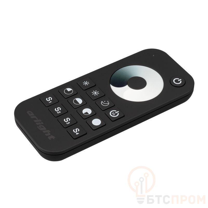Кнопочный радиопульт с сенсорным кольцом 2.4 ГГц черного цвета для управления одноцветным (DIM) источником света. 1 зона управления, 4 слота памяти пользовательских настроек, управление яркостью с помощью сенсорного кольца. Питание 3VDC (AAA*2). Габариты 122x53x17.5 мм. Изготовлен из пластика с покрытием Soft Touch. Управляет контроллерами и панелями серии SMART (поставляются отдельно). Настенные держатели приобретаются отдельно (см. аксессуары).