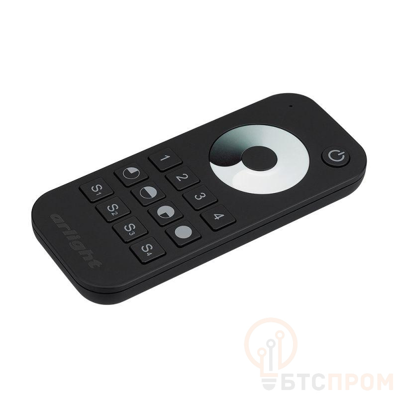 Кнопочный радиопульт с сенсорным кольцом 2.4 ГГц черного цвета для управления одноцветным (DIM) источником света. 4 зоны управления, 4 слота памяти пользовательских настроек, управление яркостью с помощью сенсорного кольца. Питание 3VDC (AAA*2). Габариты 122x53x17.5 мм. Изготовлен из пластика с покрытием Soft Touch. Управляет контроллерами и панелями серии SMART (поставляются отдельно). Настенные держатели приобретаются отдельно (см. аксессуары).