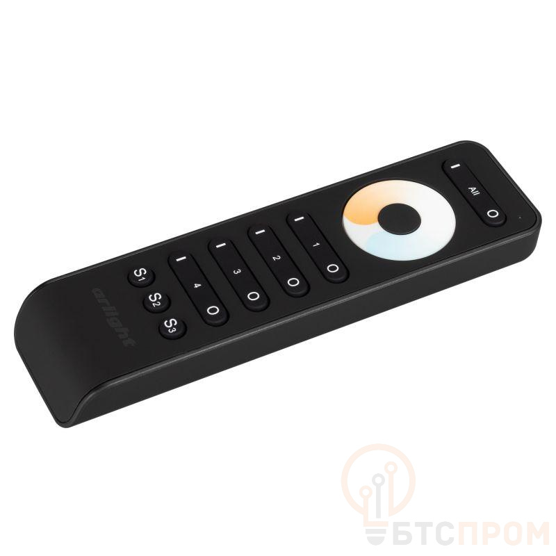 Кнопочный радиопульт с сенсорным кольцом 2.4 ГГц черного цвета для управления мультибелым (MIX) источником света. 4 зоны управления, 3 слота памяти пользовательских настроек, управление оттенком белого с помощью сенсорного кольца. Питание 3VDC (AAA*2). Габариты 155x43x17.5 мм. Изготовлен из пластика с покрытием Soft Touch. Управляет контроллерами и панелями серии SMART (поставляются отдельно).