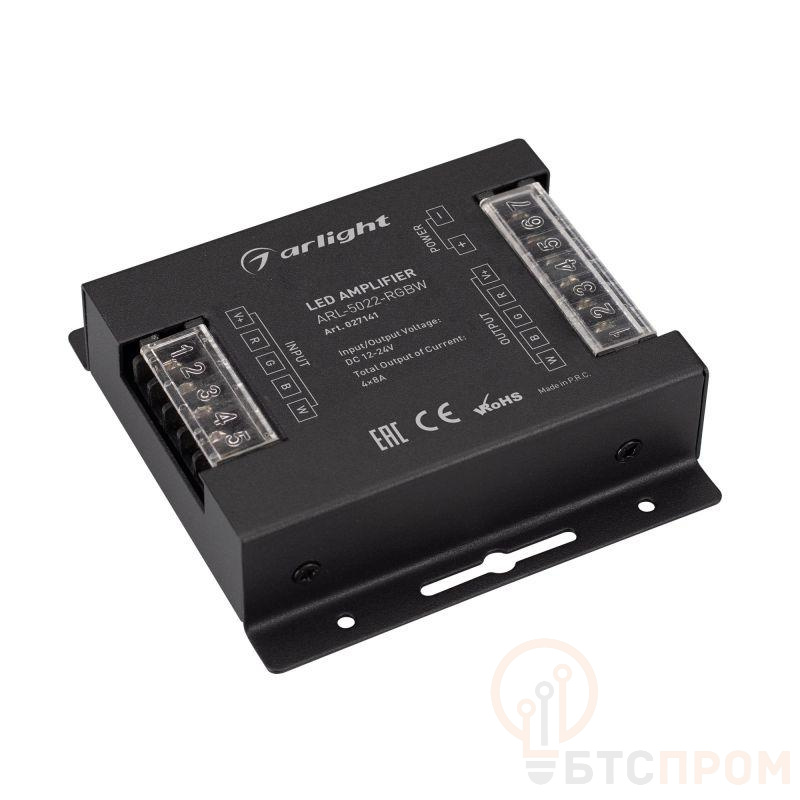 4-х канальный RGBW усилитель для контроллеров (12-24VDC). Питание 12-24VDC. 4 канала, ток нагрузки 4x8A, мощность нагрузки 384-768W. Размер 94x92x26 мм.