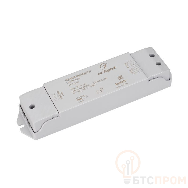 Одноканальный усилитель для диммеров (12-24VDC). Питание 12-24VDC. 1 канал, ток нагрузки 1x15A, мощность нагрузки 180-360W. Размер 175x45x27 мм.