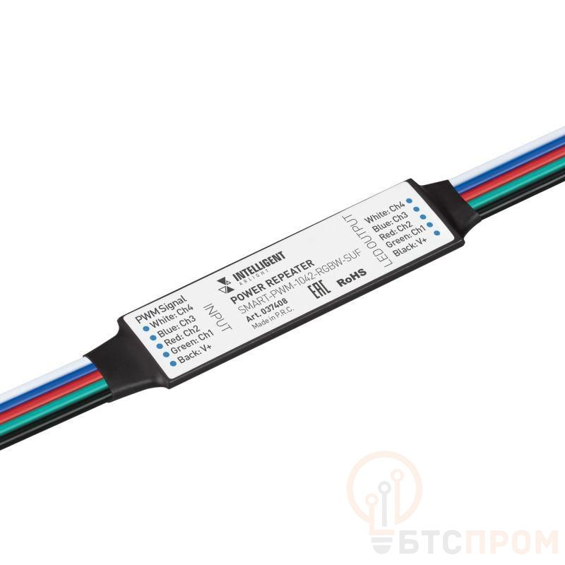 Четырехканальный усилитель для контроллеров SMART-RGBW (12-24VDC). Питание 12-24VDC. 4 канала, ток нагрузки 4x1A, мощность нагрузки 48-98W. Размер 54x15x3 мм.
