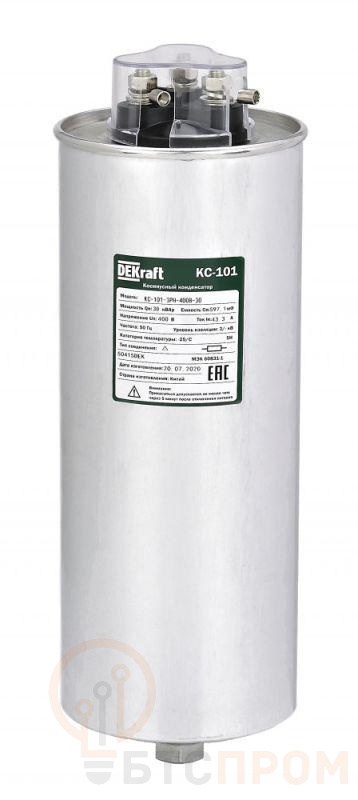 Косинусный трехфазный конденсатор самовосстанавливающегося типа серий КС-101 предназначен для корректировки коэффициента мощности в электрических сетях переменного тока 50/60 Гц напряжением 400 В. Номинальная мощность 30 кВАр.