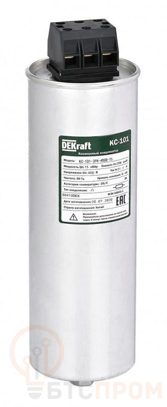 Косинусный трехфазный конденсатор самовосстанавливающегося типа серий КС-101 предназначен для корректировки коэффициента мощности в электрических сетях переменного тока 50/60 Гц напряжением 525 В. Номинальная мощность 15 кВАр.