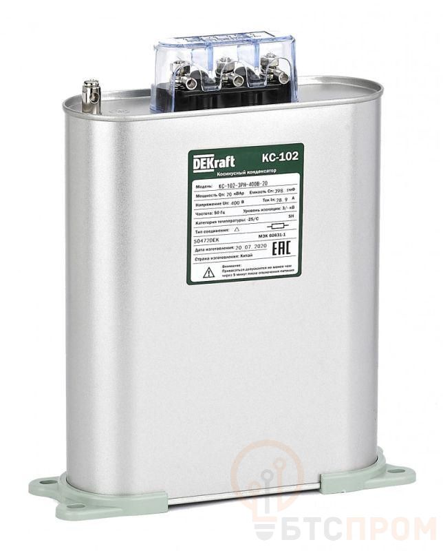 Косинусный однофазный конденсатор самовосстанавливающегося типа серий КС-102 предназначен для корректировки коэффициента мощности в электрических сетях переменного тока 50/60 Гц напряжением 400 В. Номинальная мощность 20 кВАр.