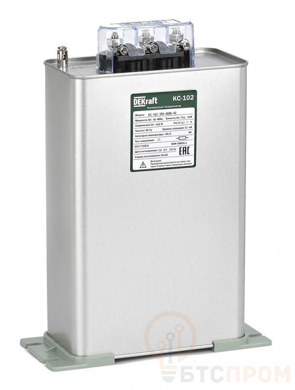Косинусный трехфазый конденсатор самовосстанавливающегося типа серий КС-102 предназначен для корректировки коэффициента мощности в электрических сетях переменного тока 50/60 Гц напряжением 450 В. Номинальная мощность 40 кВАр.